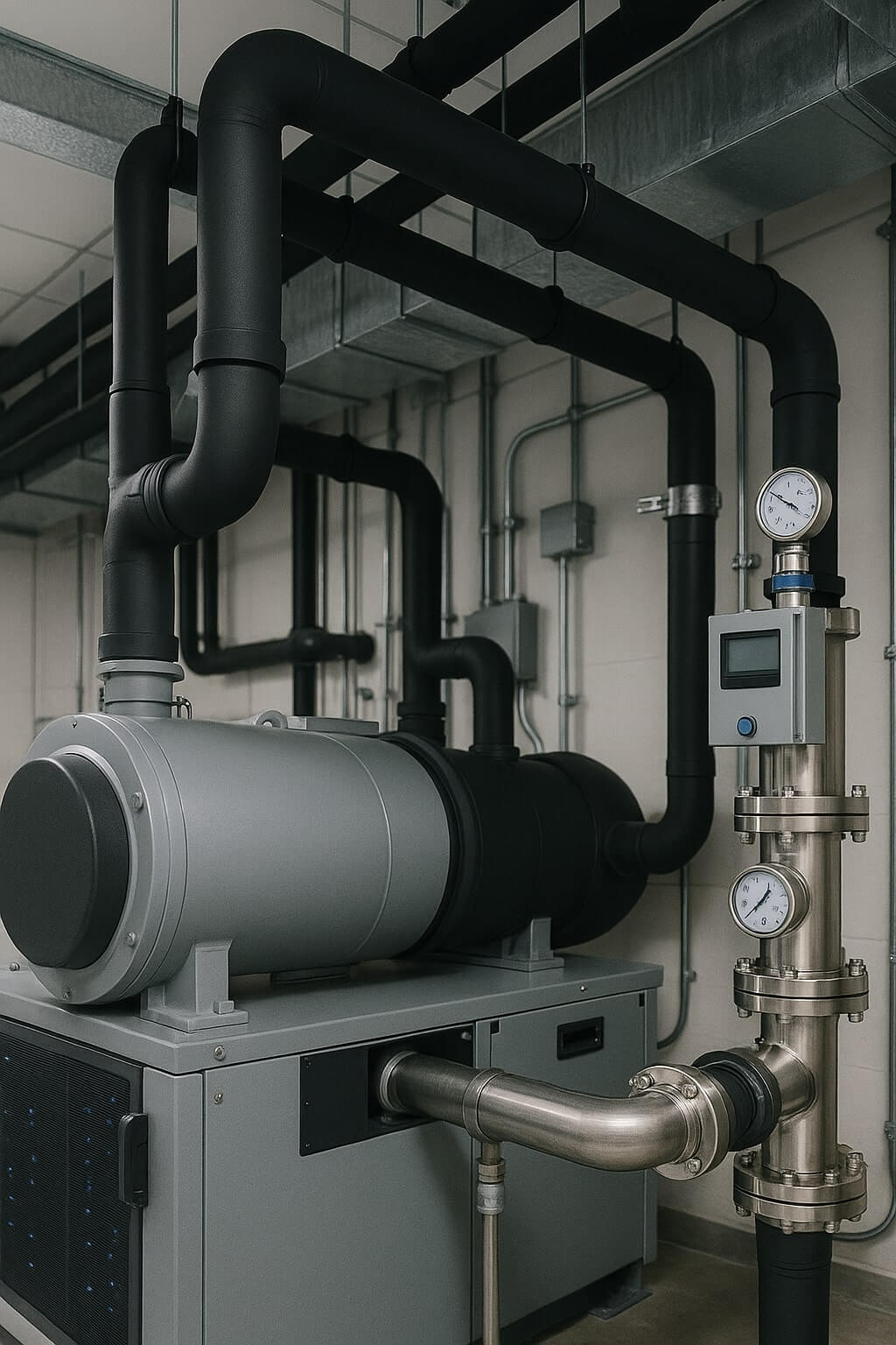 Systemy oparte na wodzie lodowej to rozwiązanie wykorzystywane wszędzie tam, gdzie niezbędne jest efektywne chłodzenie w dużej skali – w zakładach produkcyjnych, centrach logistycznych, biurowcach, hotelach czy szpitalach. Woda lodowa (o temperaturze zazwyczaj 6–7°C) transportowana jest do urządzeń końcowych, które odbierają ciepło z pomieszczeń lub procesów technologicznych. To rozwiązanie idealne do centralizacji chłodzenia wielu stref i zapewnienia wysokiej niezawodności.